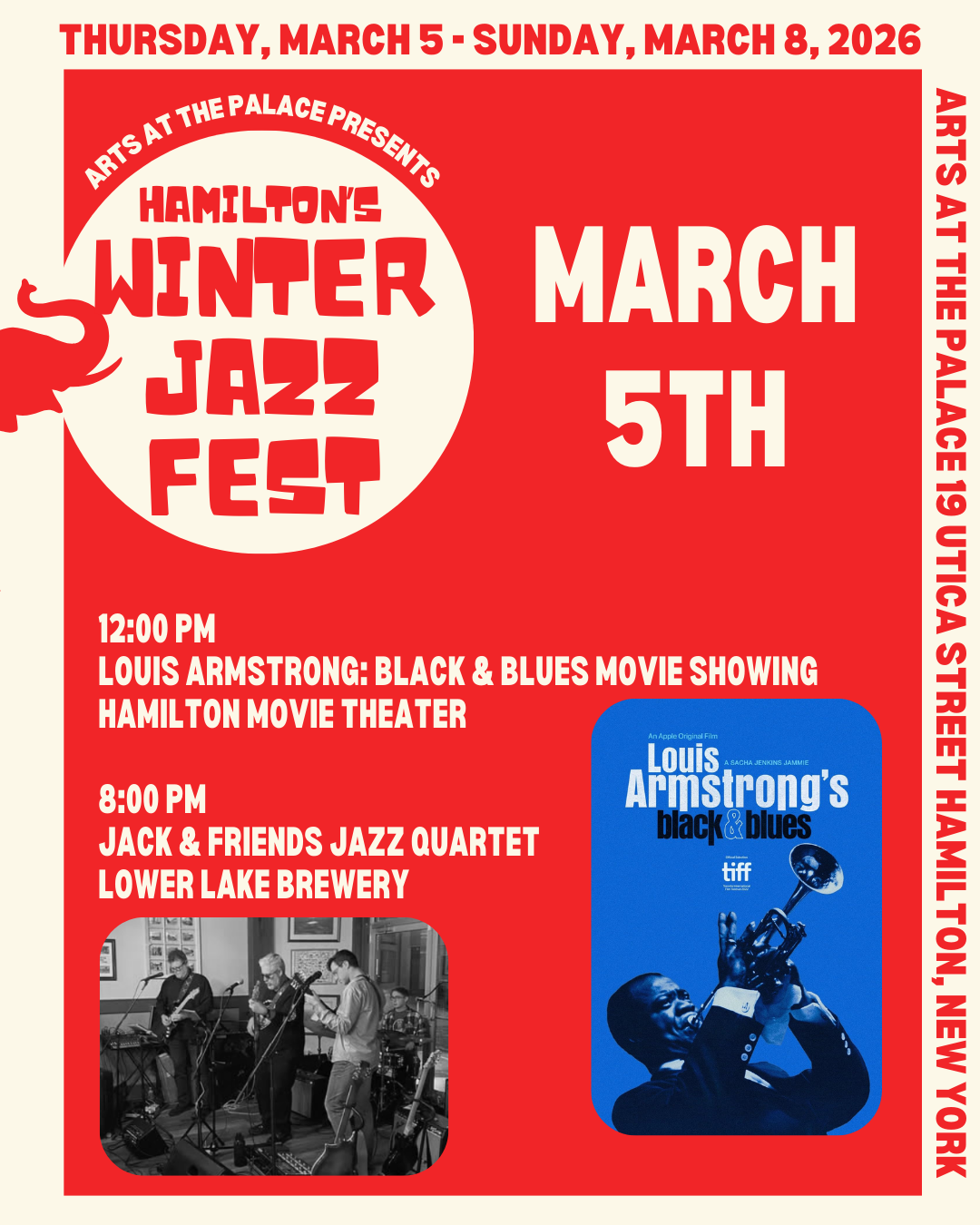 Presented by the Hamilton Movie Theater, this free community screening explores the life and legacy of Louis Armstrong. Schools and student groups are especially encouraged to attend.